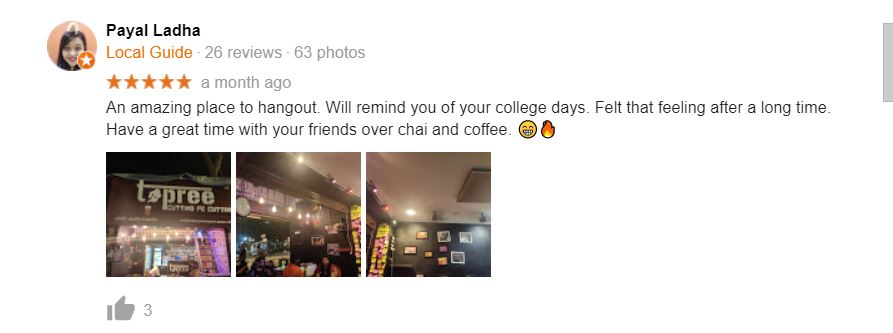 Tapree Cafe is listed on Google Business, You may see their customer reviews & ratings. The customer has given good reviews.