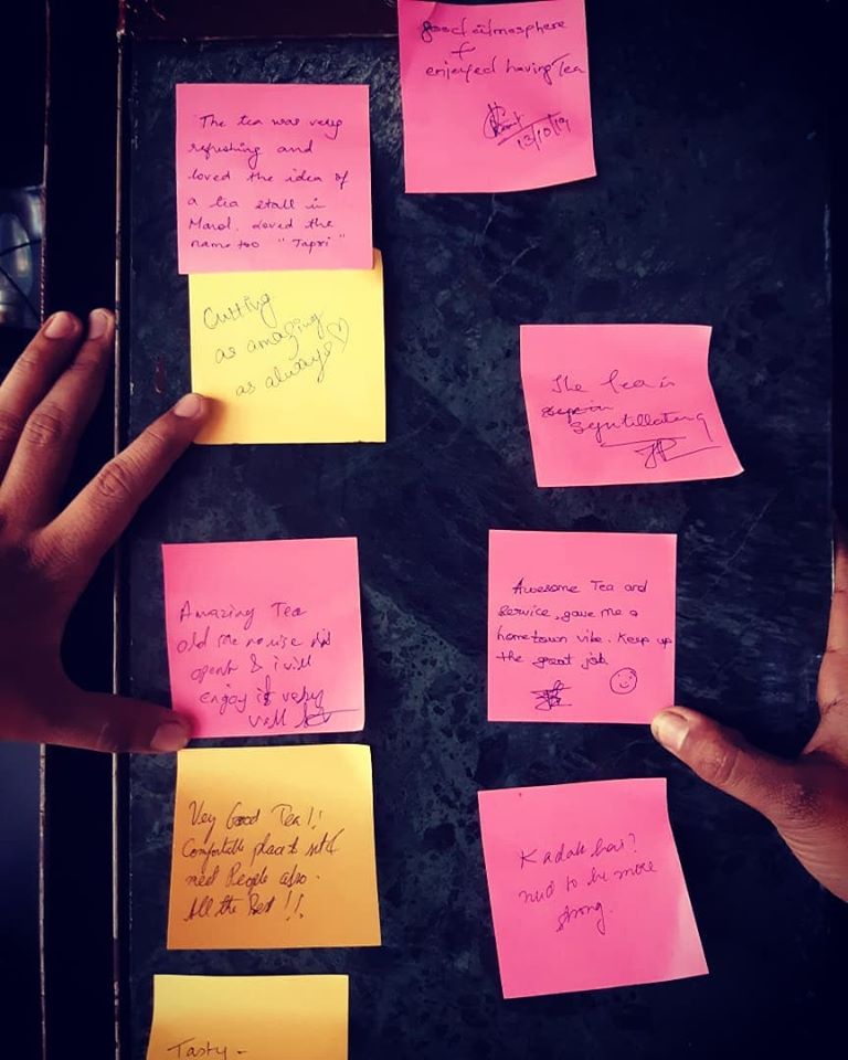 Customers have shared their feedback on a Sticky Note Pad. The owner of Tapree Cafe is having the vision to serve their customer a great experience, so they will keep on visiting their Cafe.