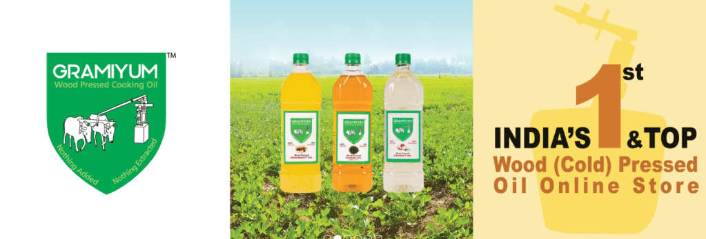 Gramiyum is especially known for its wood cold pressed Oil manufacturing business. Their manufacturing unit is located in Karikkan Nagar Reddichavady, Cuddalore. Gramiyum is having its corporate office in Chennai. According to Company officials, Cold-Pressed Groundnut oil is manufactured by the old traditional method by using wooden chekku (Marachekku in Tamil).