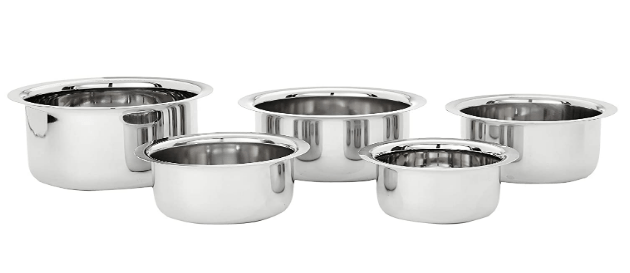 4 – Amazon Brand – Solimo Stainless Steel Tope Set (5 pieces, 425 ml, 550 ml, 850 ml, 1250 ml and 1500 ml, Induction and Gas compatible)