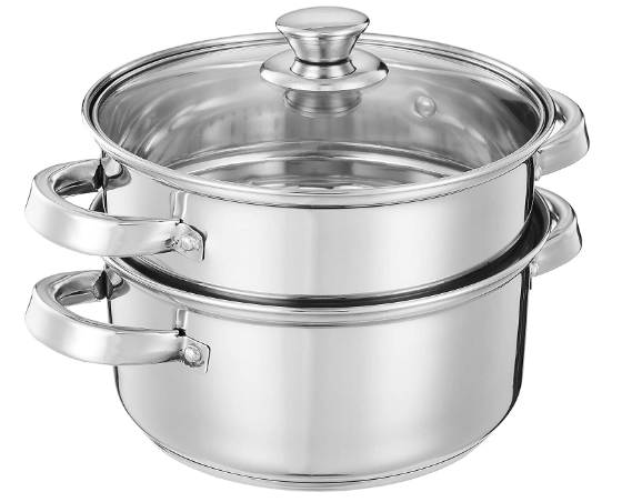 6 – Amazon Brand – Solimo Stainless Steel Induction Bottom Steamer/Modak/Momo Maker with Glass Lid (2500ml)