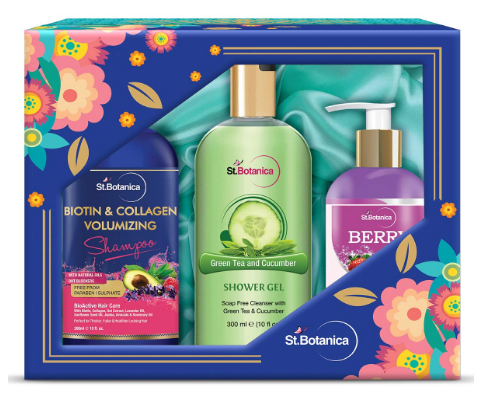 - StBotanica Body Kit: Biotin & Collagen Shampoo + Green Tea & Cucumber Shower Gel + Berry Cleanser