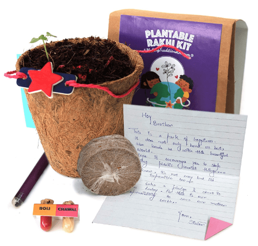 - bioQ Plantable Rakhi with Seeds | Eco Friendly Kit with Planting Set, Festive Essentials | Purple Star Design | Grow Plants from Rakhi