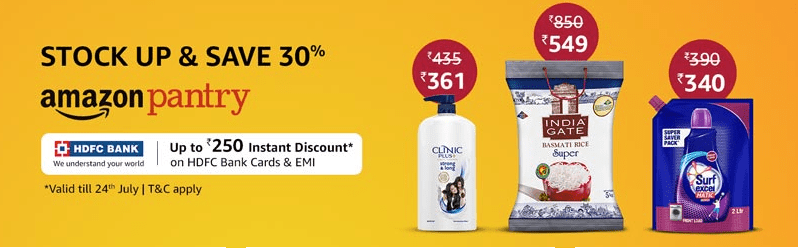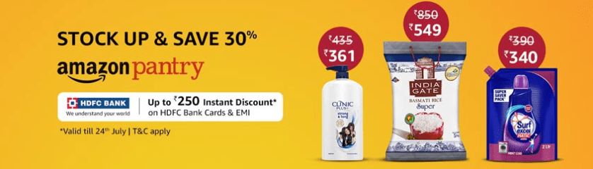 Amazon Pantry offers you everyday essentials and additional exclusive deals on grocery items, breakfast, snacks, beverages, personal care, beauty, cleaning and many more at best price in India.