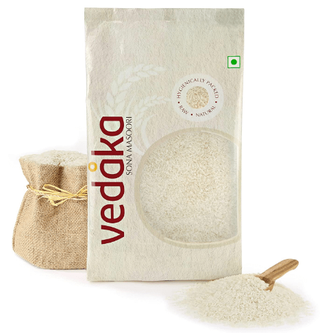 - Amazon Brand – Vedaka Sona Masoori Raw Rice, 5Kg, White