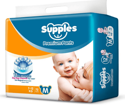 - Supples Regular Baby Pants Medium Size Diapers (72 Count)