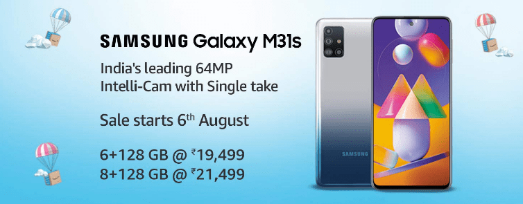 Samsung India has launched new mid range mobile in India. The Galaxy M31S is India’s leading 64MP Intelli-Cam with Single Take. This Mobile comes with two different variant, 6GB Ram + 128GB storage and another with 8GB Ram + 128GB storage. The company will sell Galaxy M31s via Amazon.in, Samsung.com and select retail stores from 6th August.