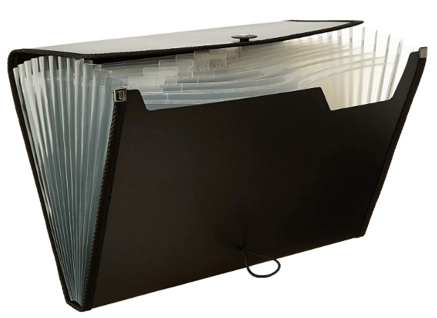 - Amazon Brand – Solimo Expanding File Folder, Letter Size (Fits A4 Paper), Black, with 12 pockets