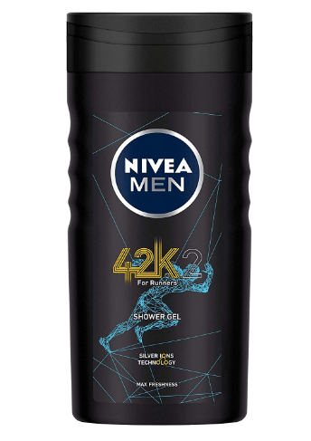 - NIVEA Men 42k Shower Gel, with Silver Ions Technology for Max Freshness – Running & Workout Essentials – 3 in 1 Body Wash for Body, Face & Hair, 250 ml