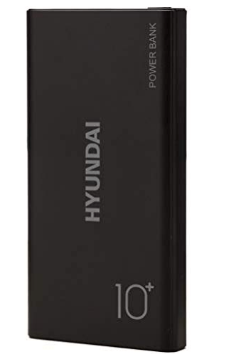 - Hyundai 10000 mAh Li- Polymer Metal Design Power Bank, 2.1A Dual Inputs (Type C + Micro USB) and 2.1A Dual Outputs (USB + Type C) for All Android and iOS Devices (Black) HY-PB-1002 Black