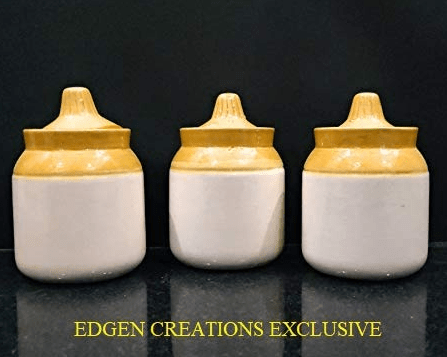 - EDgen Ceramic Handmade Pickle Jar Set with Lid, Dining Table Pickels Containers and an Ideal Gift for Family (Set of 3)