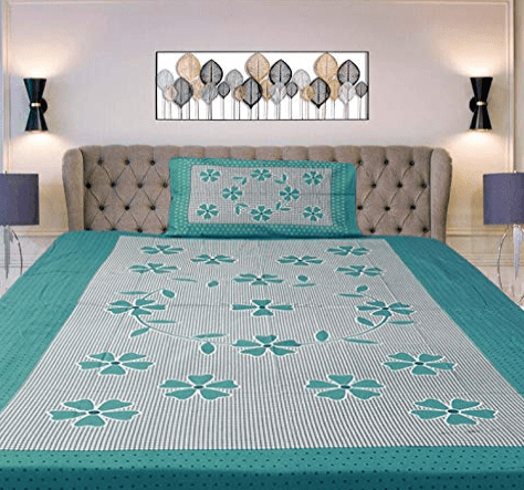 - vihar creation Cotton 144 TC Bedsheet (Green_Standard)