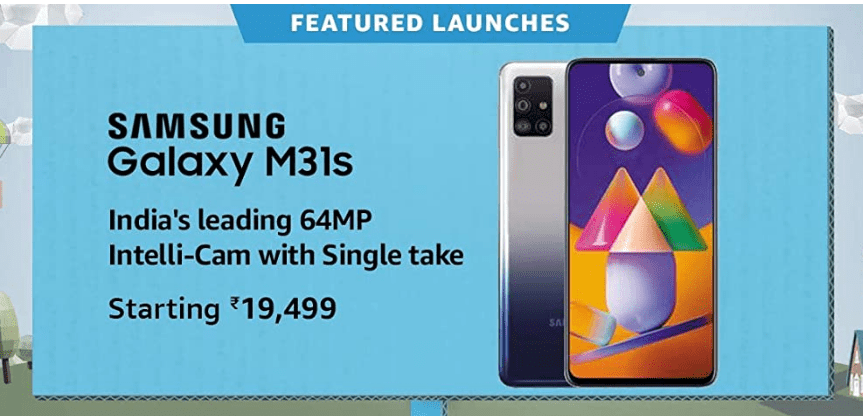 - Samsung Galaxy M31s (Mirage Blue, 6GB RAM, 128GB Storage)