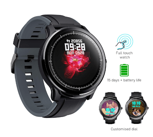- Hoteon FT01 , 2020 Version, 1.3-inches Full Touchscreen and Round Weather Dial Display IP68 Waterproof, Remote Camera , Music Control , Ultra-Long Battery Life Smartwatch for Men and Women (Grey)