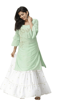- SINGNI Handcrafted Women’s Rayon A-Line Kurta & Skirt Set
