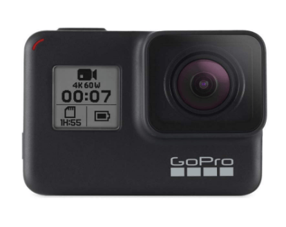 - GoPro HERO7 Black — Waterproof Action Camera with Touch Screen 4K Ultra HD Video 12MP Photos 720p Live Streaming Stabilization