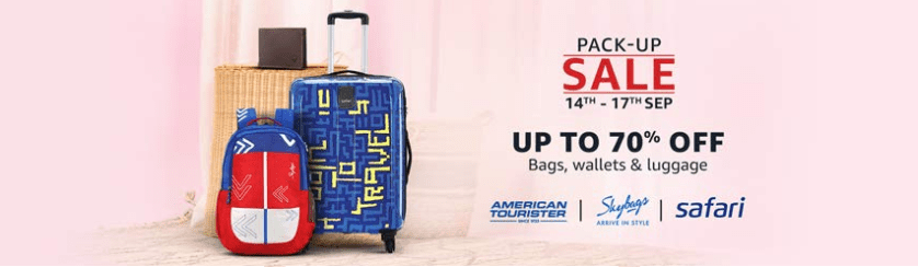 Pack-Up Sale, Amazon India is offering Bags, Wallets and Luggage at Fair Price. You may get good discounts on purchase on Backpacks, Laptop Bags, Men’s Wallets, School Bags, Messenger Bags, Gym Bags and many others.