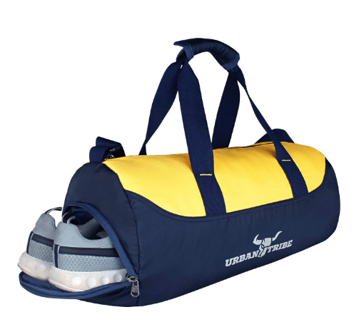 - Urban Tribe Bolt Gym Bag Sports Duffel with Shoe Compartment 28 L (Navy/Yellow)