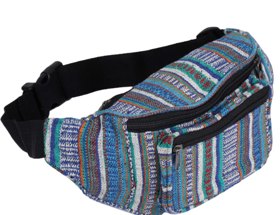 - K London Stylish Canvas Dari Woven Multi Colored Ethnic Design Waist Pack Waist Pouch Travel Pouch Passport Holder Waist Bag with Adjustable Strap