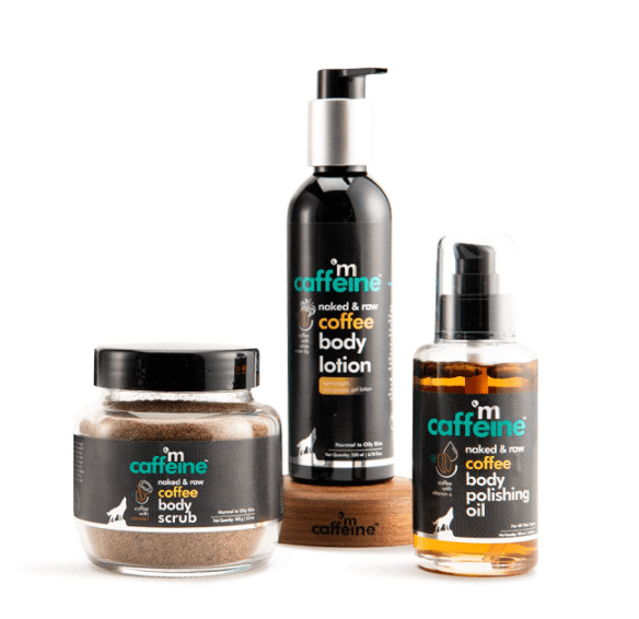 - mCaffeine Coffee Body Toning & Polishing Kit | Nourishing, Tan Removal, Moisturization | Body Oil, Body Scrub, Body Lotion | Paraben & Mineral Oil Free