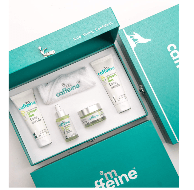 - mCaffeine Green Tea Quick Face Detox Gift Kit | Dirt Removal, Exfoliation, Hydration | Face Wash, Face Scrub, Face Serum, Night Gel | Paraben & SLS Free
