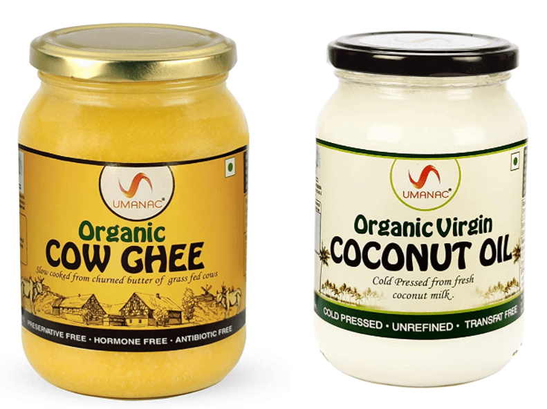 - Umanac Organic Cow Ghee & Coconut Oil Glass Bottle,1000ml (Each 500ml)