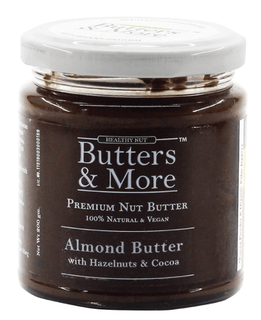 - Butters & More Vegan Almond Butter with Hazelnuts, Dark Cocoa & Organic Palm Jaggery (200G).