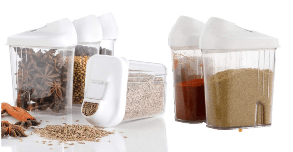 - Machak Easy Flow Plastic Kitchen Storage Jars & Container Set, Transparent (Set of 6,- 250ml)