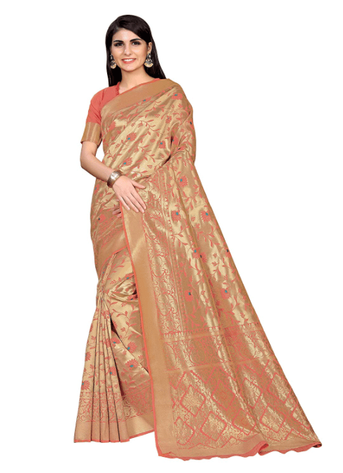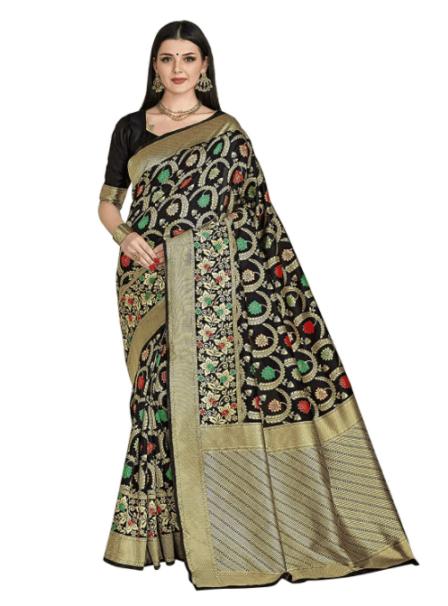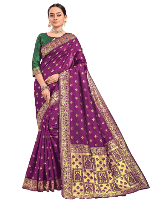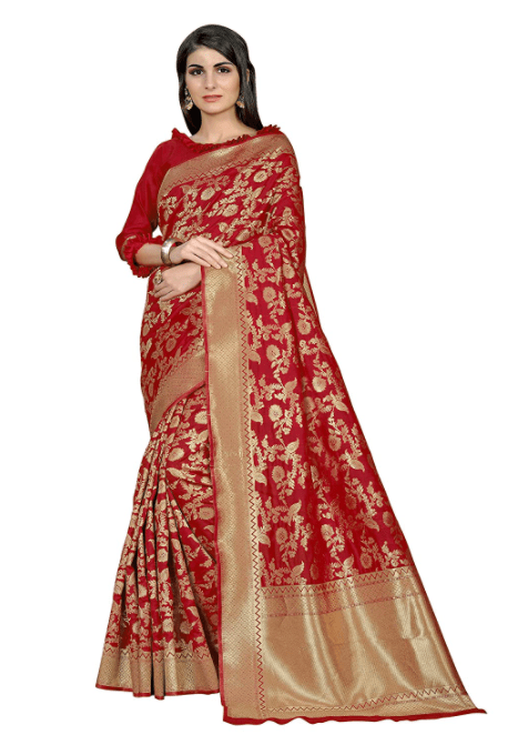 - CLOTHAM Women’s Silk Blend Banarasi Saree