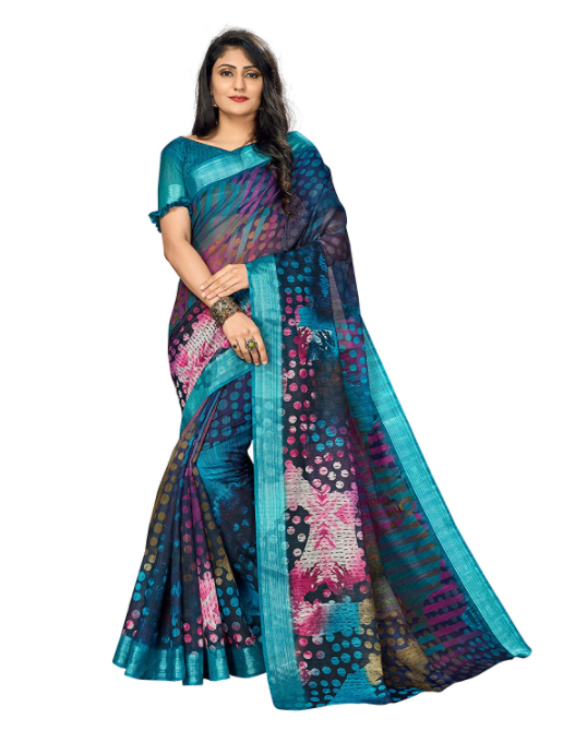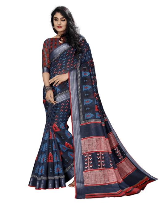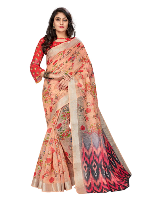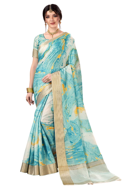 - CLOTHAM Women’s Banarasi Linen Saree With Unstitched Blouse