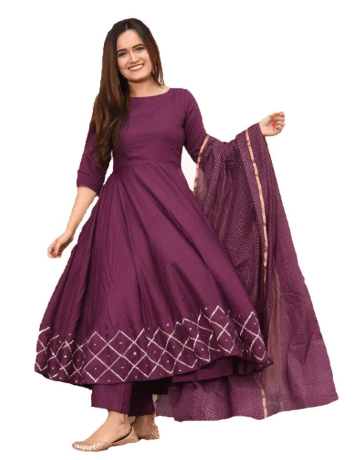 - GoSriKi Women’s Rayon Anarkali Kurta With Gold Printed Dupatta