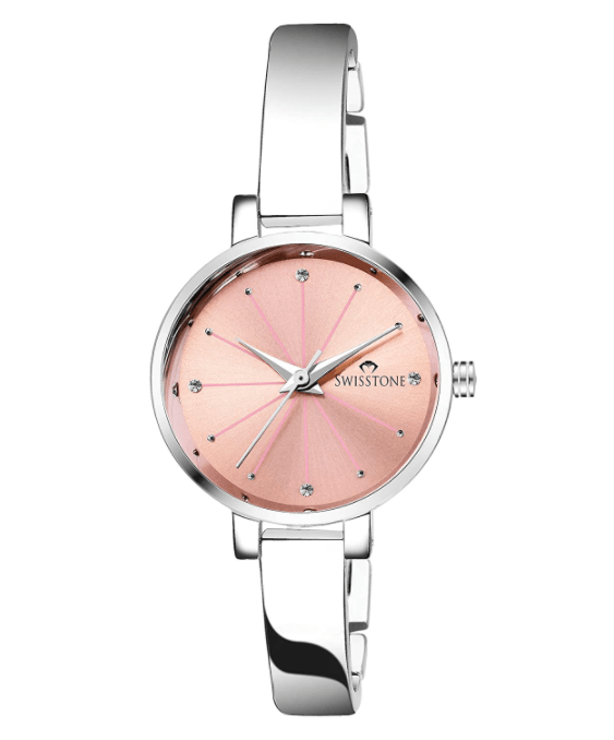 - SWISSTONE Analogue Women’s Watch (Pink Dial SIlver Colored Strap)