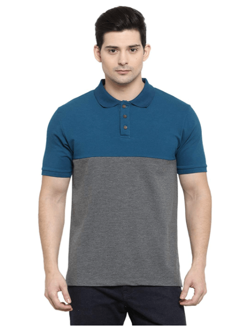 - Kalt Men’s Dual Colour Half Sleeves Polo Neck Cotton Blend T-Shirt