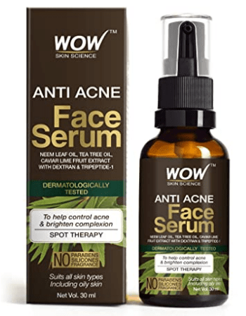 3 – WOW Skin Science Anti Acne Face Serum – Natural Neem Leaf Oil, Tea Tree Oil, Caviar Lime Fruit Extract – Spot Therapy – No Parabens, Silicones & Fragrance – 30ml