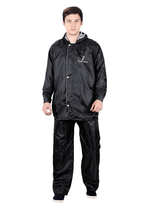 - FabSeasons Reversible Waterproof Raincoat with Adjustable Hood and Reflector at Back for Night Visibility. Pack Contains Top, Bottom and Storage Bag