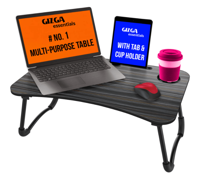 - Gizga Essentials Multi-Purpose Portable & Foldable Wooden Desk for Bed Tray, Laptop Table, Study Table (Black)