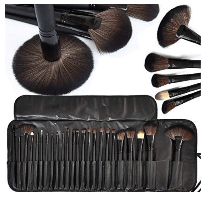 - MACPLUS Fiber Bristle Makeup Brush Set with Black Leather Case- BLACK, 24 Pieces